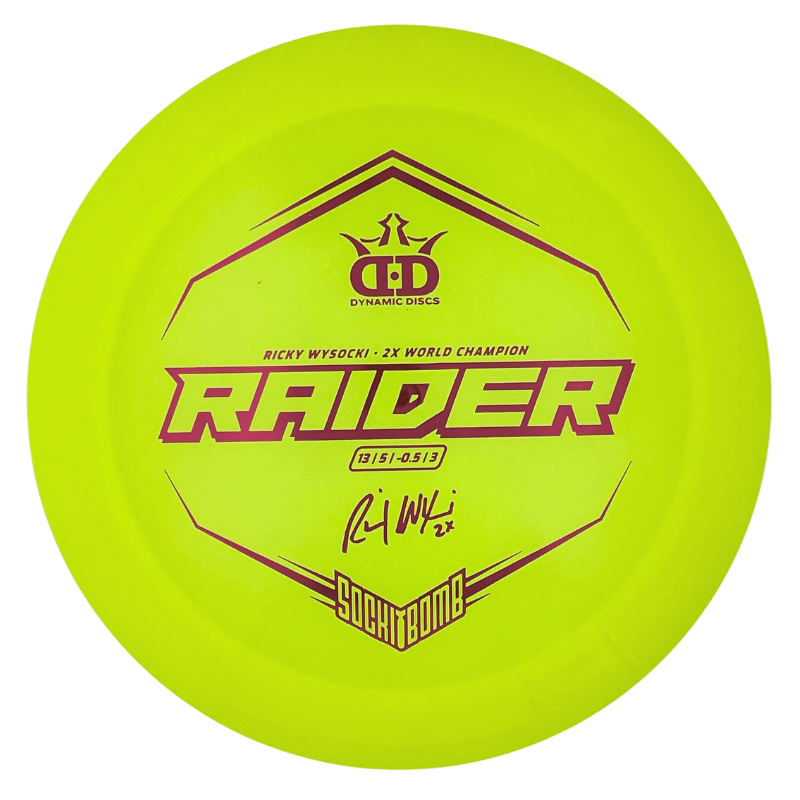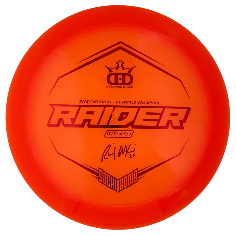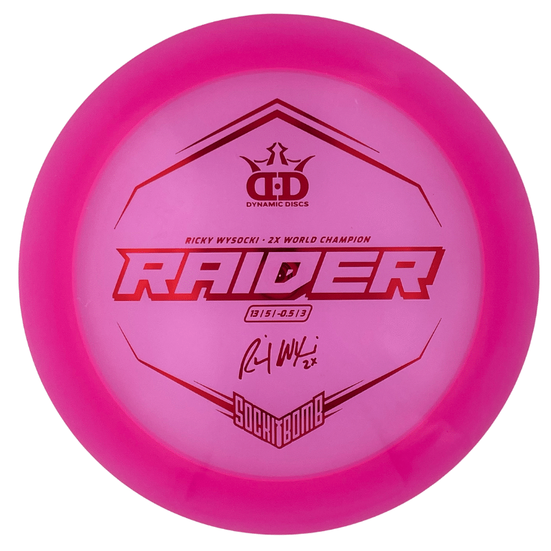 The Raider is stealing more and more spots in bags of all skill levels. The disc is great at finishing forward instead of diving at the end of its flight. Players with slower arm speeds will find a dependable, overstable driver that will gain them plenty of distance, while faster arms will love the Raider as a workhorse driver that is perfect for carrying different “beat in levels” to cover a variety of shots.