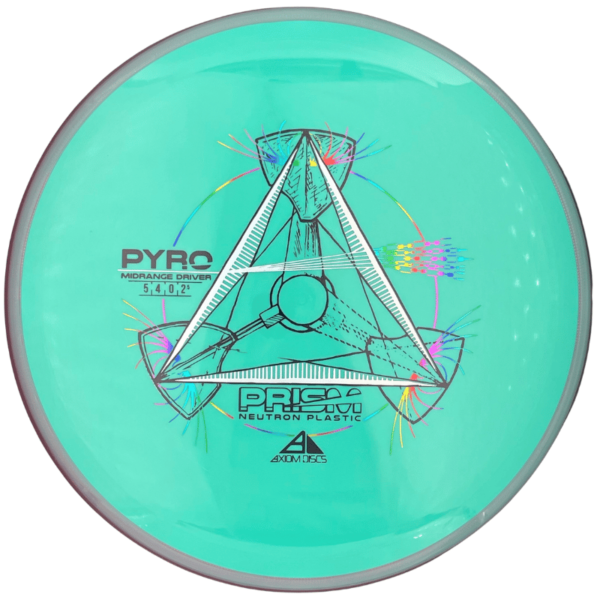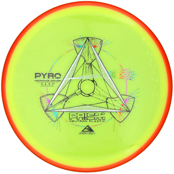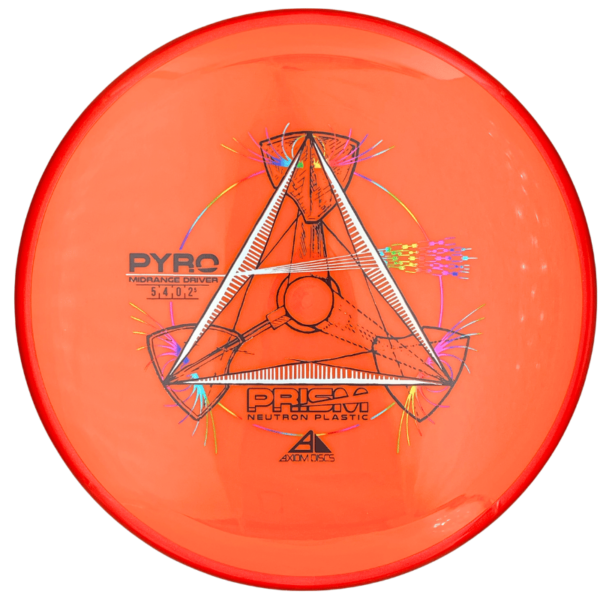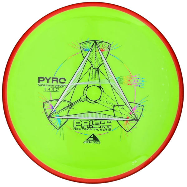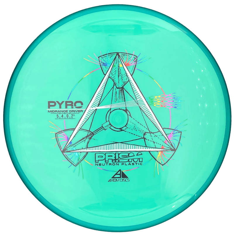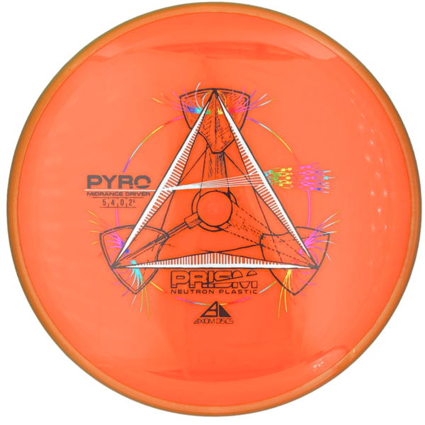 Neutron -kannella, Prism -rimmillä ja upealla stämpillä varustettu Prism Pyro loistaa upeana läpinäkymättömänä kiekkona, jossa on läpikuultava vanne. Pyro on MVP Deflectoria paremmin liitävä ja hallittavan vakaa kiekko. Prism Pyro on Axiomin ensimmäinen ylivakaa midrange-kiekko. Pyro on riittävän vakaa lentääkseen tasaisesti kovassakin tuulessa ja sillä on mahdolista heittää kovaa ilman, että se poikkeaa reitiltään tai menettää linjaansa.