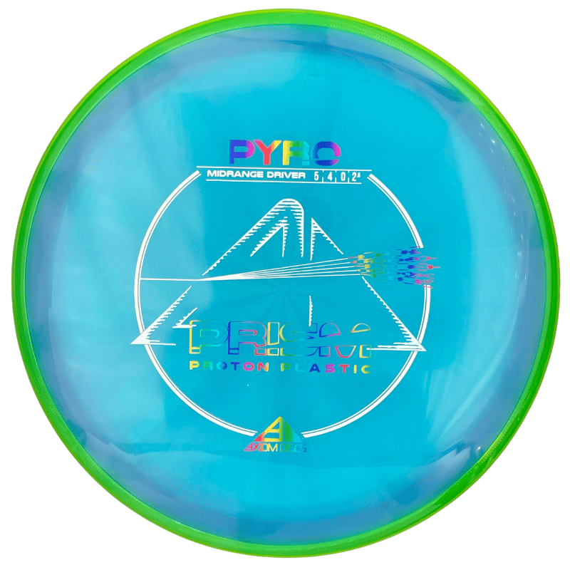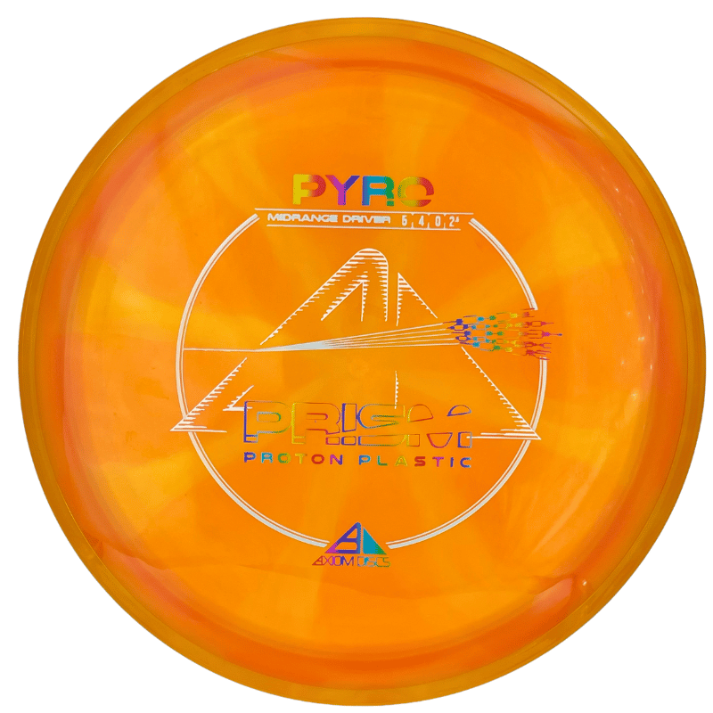 Proton -kannella, Prism -rimmillä ja upealla stämpillä varustettu Prism Pyro loistaa upeana lähärikiekkona, jossa on läpikuultava vanne. Pyro on MVP Deflectoria paremmin liitävä ja hallittavan vakaa kiekko. Prism Pyro on Axiomin ensimmäinen ylivakaa midrangekiekko. Pyro on riittävän vakaa lentääkseen tasaisesti kovassakin tuulessa ja sillä on mahdolista heittää kovaa ilman, että se poikkeaa reitiltään tai menettää linjaansa.